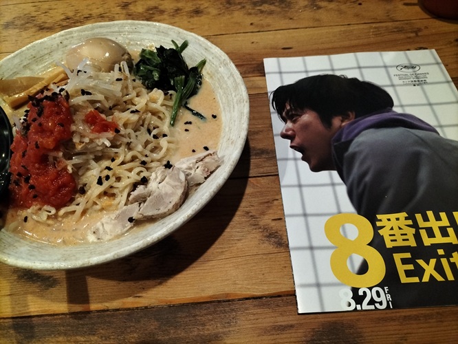 映画の後はシネコンの隣のラーメン屋さんで、夏季限定の冷やし味噌トマトです。映画の半券サービスで味玉をトッピングしてもらってます。