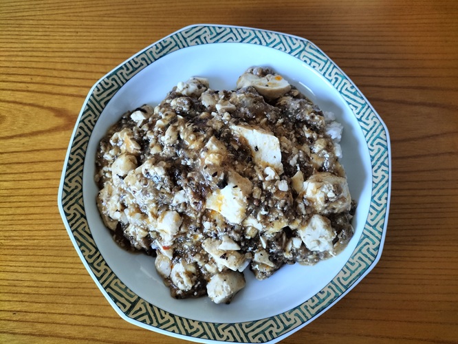 昨夜の麻婆豆腐の残りを、麻婆丼に仕立てました。