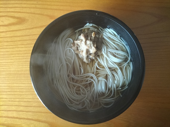 そこで、お昼のにゅうめんに納豆を載せていただきます。