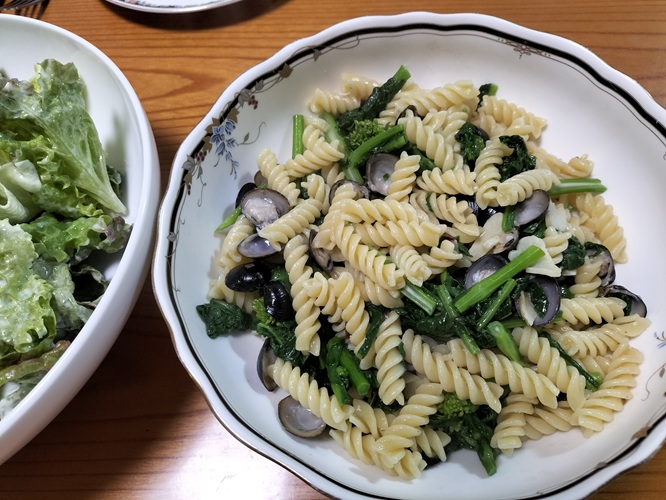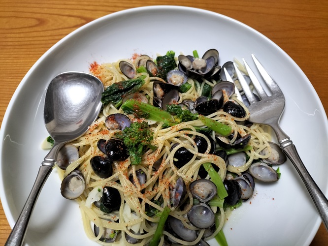 シジミはほろ苦い菜の花と相性がよくパスタで食べました。