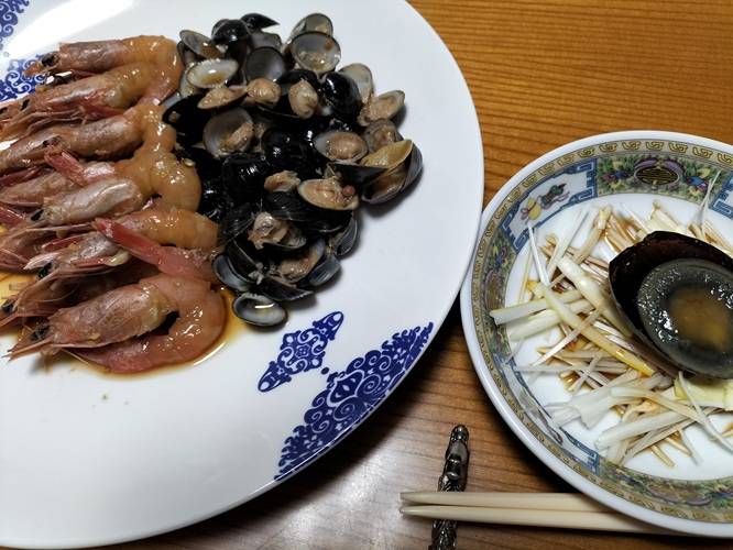 紹興酒で煮て、中華でも味わいました。